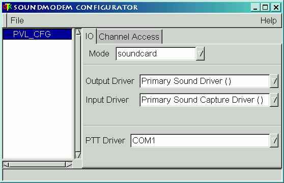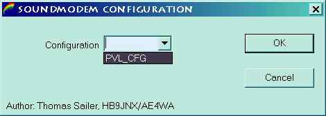 Another pop-up box will ask for the soundmodem configuration. From the drop-down menu, choose your configuration name. ( PVL_CFG in my case. )
