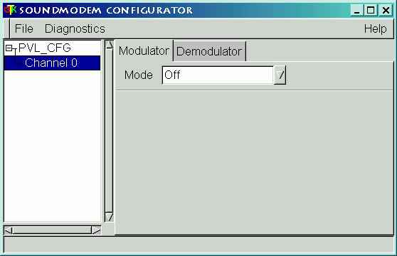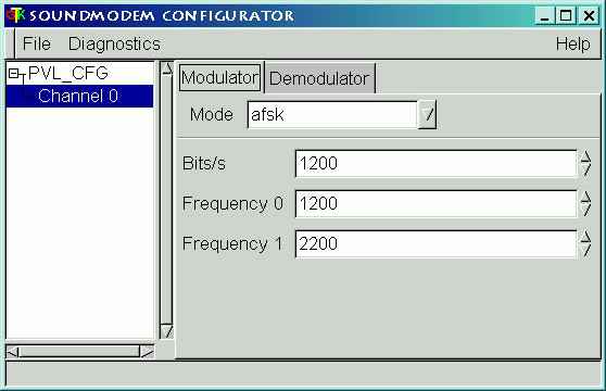 In the MODE menu, choose: afsk. Do this for both the modulator and demodulator tabs.