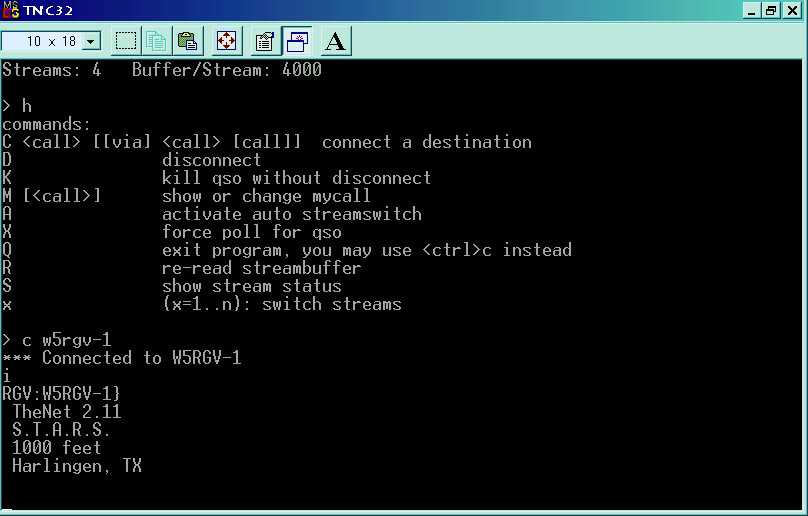 Here, I connected to the local TheNet node, sent the "I" for "Information" command, so the node would send some text back.